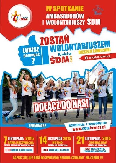 IV spotkanie ambasadorów i wolontariuszy ŚDM - 7 listopada (początek o 9.00 w Szkole Podstawowej nr 1 w Rawie Maz., i tam warsztaty, dyskusje - o 14.00 Msza św. z Bp Andrzejem w naszym kościele, posiłek i modlitwa kończąca w k-le OO. Pasjonistów).